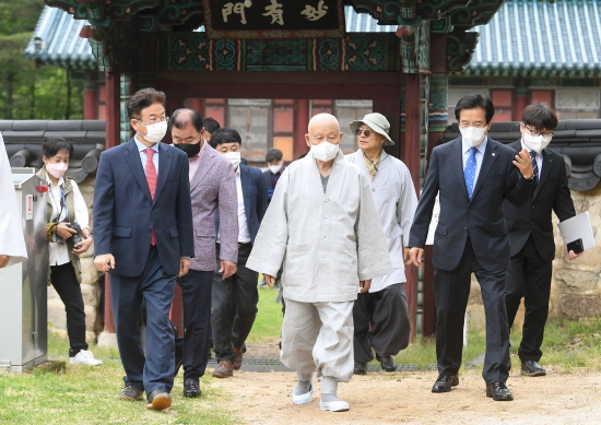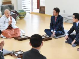 이에 종정예하 성파 대종사는 “바쁜 일정에도 봉암사를 방문해 주셔서 감사드린다”며, “그간 명상마을 건립에 물심양면 도움을 준 경북도의 정성을 잘 알고 있다. 명상마을이 잘 운영돼 인류의 삶을 더 지혜롭고 평화롭게 하는데 일조하도록 종단에서도 적극 지원하겠다”고 말했다.