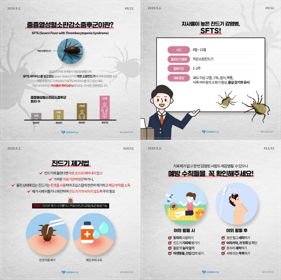특히 올해 여름은 평년보다 기온이 높을 것이라는 기상청 전망에 따라 진드기에 물릴 확률이 높아 SFTS 감염 가능성이 증가할 수 있어 농작업이나 야외활동 시 긴소매 옷, 긴 바지 착용 등 예방수칙을 지키는 것이 무엇보다 중요하다.