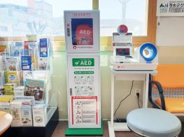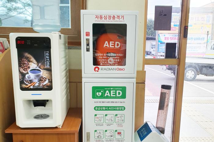 이번에 설치한 자동심장충격기는 심실세동이나 심실빈맥으로 심정지가 되어있는 환자에게 전기충격을 전달하여 심장의 정상리듬을 회복시켜 주는 응급의료기기로써, 의학지식이 부족한 일반인들도 쉽게 사용이 가능한 응급장비이다.