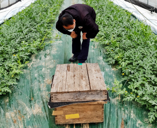 예천군 농업기술센터는 군비로 1억1천만 원을 확보해 ‘시설과채류 화분매개 곤충 수정 시범사업’으로 시설과채류 농가에게 수정벌(꿀벌)을 공급하고 있다.