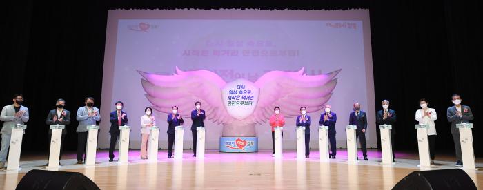 행사는 가람예술단 국악팀의 붐업 공연과 식품업계 종사자들의 코로나19 극복 영상을 시작으로, 식품위생수준 향상 유공자 시상 및 다시 일상의 날개를 활짝 펴고자 하는 결의 퍼포먼스 순으로 진행됐다.