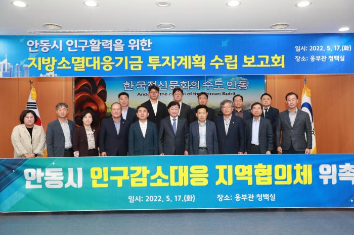 권영세 안동시장은 “민·관이 함께하는 지역협의체를 통해 다양한 의견을 공유하고 수렴해 안동시 인구 활력 도모를 위한 완성도 높은 투자계획 수립으로 지방소멸대응기금을 최대한 확보할 수 있도록 노력하겠다.”고 말했다.
