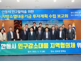 안동시는 17일 시청 웅부관 청백실에서 행정안전부가 인구감소지역을 대상으로 지원하는 '지방소멸대응기금 확보를 위한 투자사업 발굴 보고회'를 개최했다.