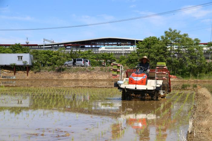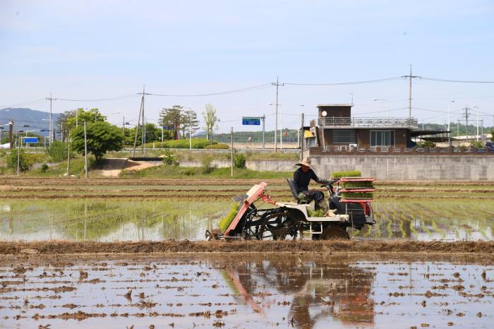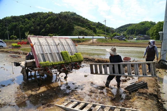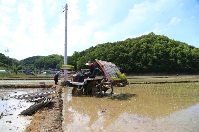 [경북온뉴스=포토뉴스] 안동 풍산읍(막곡리) 한 들녁에 모내기 작업이 한창이다. 안동시의 주요 재배품종인 영호진미쌀과 백진주쌀은 5월 말까지, 일품쌀은 6월 중순까지 모내기가 마무리될 예정이다.(사진제공/안동시공보)
