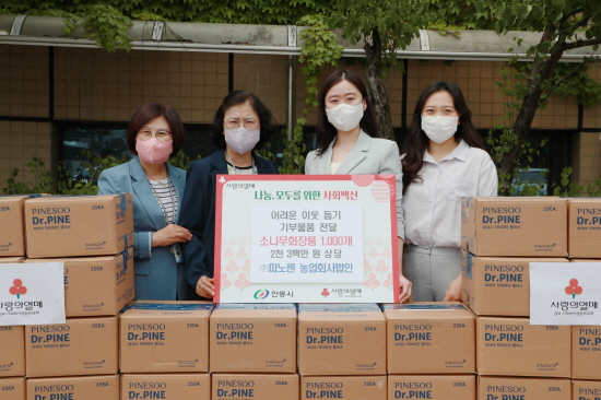 ㈜피노젠 농업회사법인은 5월 가정의 달을 맞아 안동시 취약계층 어르신들을 위해 소나무 화장품 1,000개(시가 2,300만 원 상당)를 지난 12일 안동시에 전달했다.