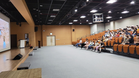 이날 와룡초등학교 학생들은(유치원생 3명, 초등학생 46명) 안동시(환경관리과, 수운관리사업소)의 안내에 따라 인공모래섬 주변을 탐방하며 쇠제비갈매기를 직접 만나볼 수 있었다. 이후, 세계물포럼기념센터 이동한 학생들은 KBS에서 제작한 짧은 영상을 시청하고 직접 그림으로 그려보는 시간을 가졌다.