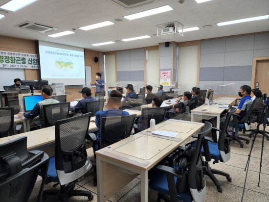음식물과 부산물을 분해하는 동애등에를 활용해 산업화와 소득화 방안 마련을 위한 이번 보고회는 곤충산업에 대한 높은 관심을 반영해 동애등에 사육 기술교육을 받는 교육생은 대면으로, 부서 관계자들은 비대면으로 진행하는 등 온‧오프라인으로 병행 실시했다.