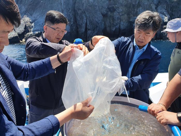 지난 23일에는 지난해에 이어 왕돌초 해상에서 해양수산국장을 비롯한 현지 어업인과 함께 10만 마리를 방류한 바 있다.