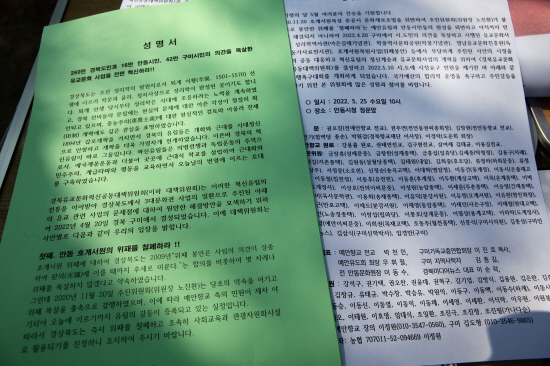 경북유교문화혁신공동대책위원회(이하 대책위원회)는 이러한 혁신유림의 전통을 이어받아 경상북도에서 3대문화권 사업의 일환으로 추진된 아래의 유교 관련 사업의 문제점에 대하여 원만한 해결방안을 모색하기 위하여 2022년 4월 20일 경북 구미에서 결성되었습니다. 이에 대책위원회는 사안별로 다음과 같이 우리의 입장을 밝힙니다.