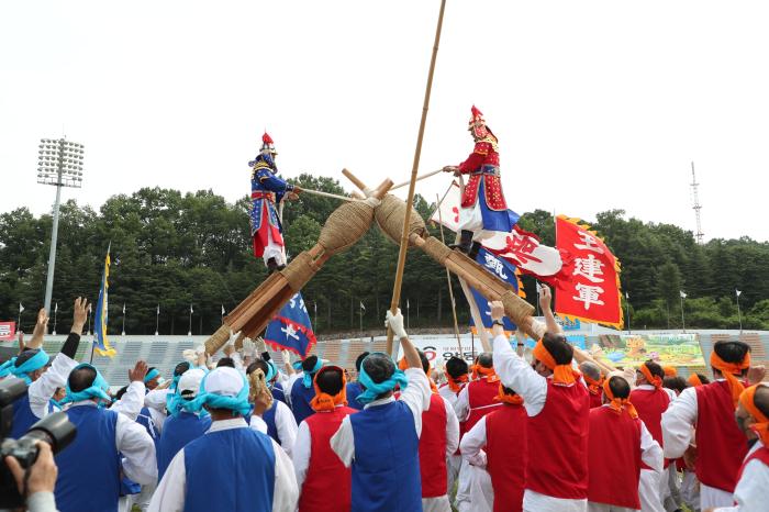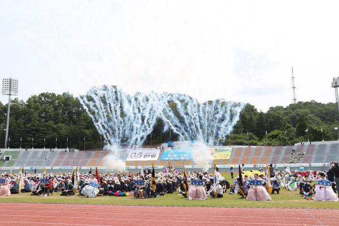 개회식 식전행사에는 무형문화재인 차전놀이가 펼쳐지며 체전 분위기를 고조시키고, 10시 선수단 입장으로 안동시민체육대축전이 시작됐다.