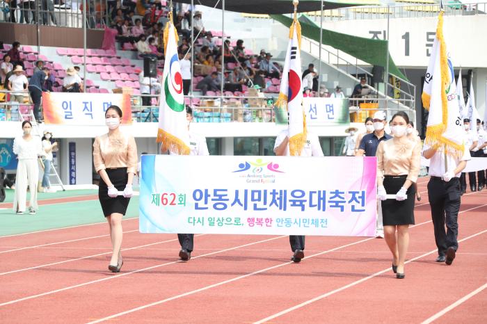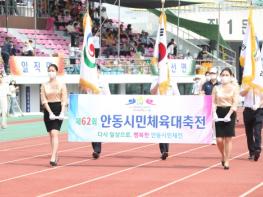 (안동시=경북온뉴스) 김승진 기자 = 『제62회 안동시민체육대축전』이 “다시 일상으로, 행복한 안동시민체전”이라는 슬로건 아래 안동시민, 향우 회원 등 15,000여명이 모인 가운데 6월 11일 10시 개회식을 시작으로 시민운동장 및 종목별 경기장에서 개최됐다.