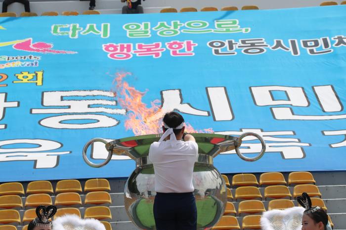 이번 체전은 코로나19로 인해 3년 만에 개최됐다. 성화 채화는 독립운동가 석주 이상룡 선생의 애국정신이 깃들어 있는 임청각 군자정에서 진행했다. 성화주자로는 SK바이오사이언스 이상균 공장장과 안동의료원 권윤미 수간호사가 나섰다.