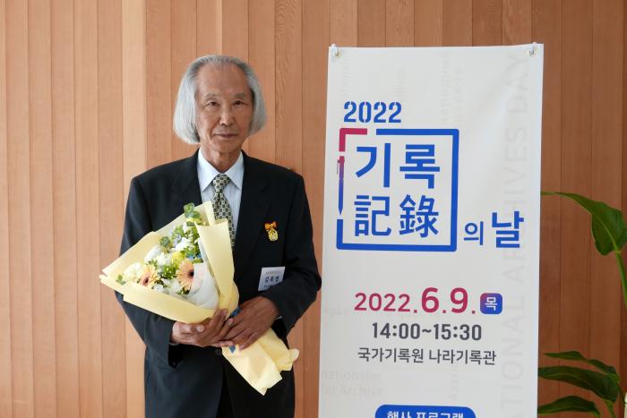 ▲6월 9일 경기도 성남 국가기록원 나라기록관에서 열린 ‘2022년 기록의 날’ 기념식에서 대통령 표창을 수상한 향토사 기록가 김복영 선생