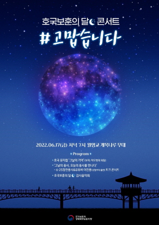 경북북부보훈지청은 17일 저녁 7시 안동시 월영교를 배경으로 개목나루 무대에서 '호국보훈의 달 콘서트 #고맙습니다'를 추진한다.
