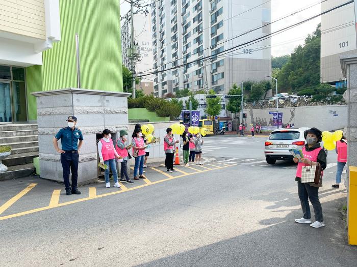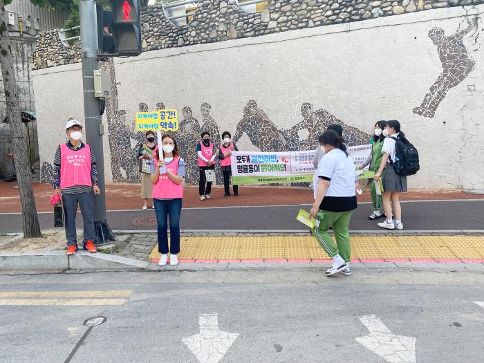 이번 캠페인은 학생들과 차량이 많이 붐비는 하교 시간대에, 사고에 취약한 횡단보도, 통학버스 불법주차 구간 등에서 추진단원과 길원여고 학생(SOS, 인터렉트동아리) 30여 명이 역전지구대 협조 아래 진행했다.