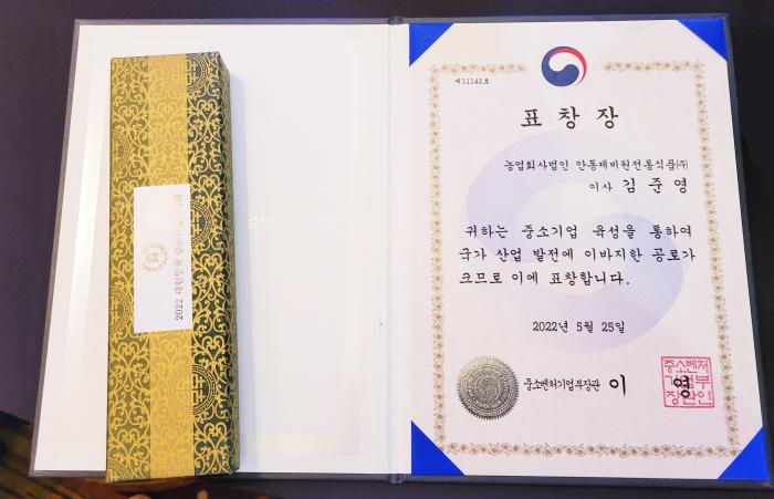 안동제비원전통식품(주) 김준영 이사가 지난 14일, 대구 호텔인터불고에서 개최된, ‘2022 대구·경북 중소기업인대회’에서 ‘중소벤처기업부 장관 표창’을 수상하는 영예를 안았다.