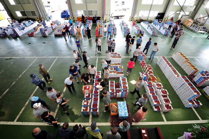 경매 첫날 자두 출하량은 150농가, 15톤, 3,000박스 가량으로 평년 수준을 유지하였으며 5kg 한 박스는 경매 최고낙찰가 40,000원에 거래되었다.