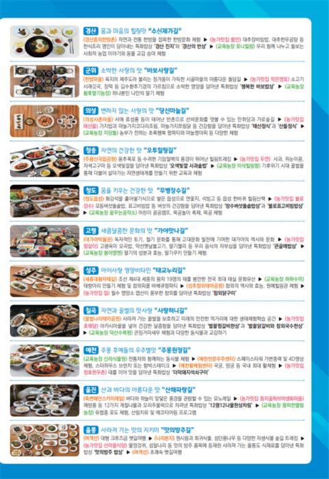 주요 코스로는 ‘경주 천년치유길’, ‘김천 육감만족길’, ‘성주 태교누리길’ 등이 있으며 시군별 주요 관광지와 농가맛집, 농촌교육농장을 함께 경험하도록 구성돼 있다.
