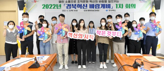 경상북도는 조직문화 혁신을 위해 새천년(MZ) 세대 도청공무원으로 구성된 혁신모임 ‘경북혁신 바람개비’(이하 혁신바람개비)가 6월 23일 도청에서 1차 회의를 갖고 본격적인 활동에 들어갔다.