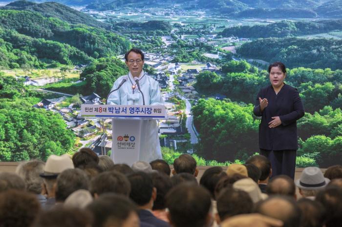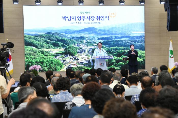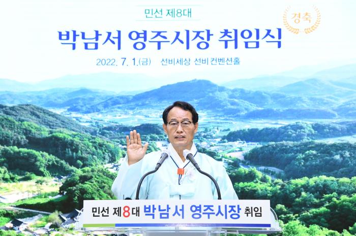 박남서 경북 영주시장이 1일 순흥면에 위치한 선비세상에서 취임식을 갖고 민선8기 출범을 공식화했다.