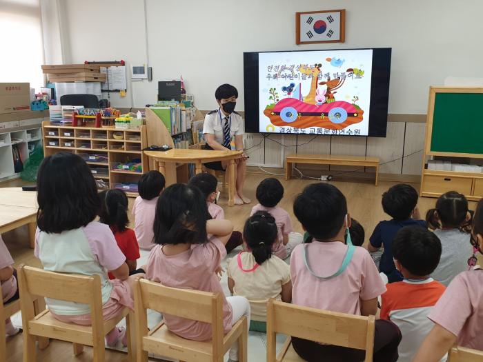 안동 길주초등학교병설유치원은 2022년 7월 4일(월) 유아 58명을 대상으로 “안전한 경북 우리 어린이들과 함께 만들어요”라는 주제로 경상북도교육문화원에서 방문하여 실시하는 어린이 교통안전교육을 실시했다.