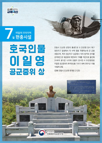 경북북부보훈지청(지청장 김덕석)은 2022년 7월 ‘이달의 우리지역 현충시설’로 호국인물 이일영 공군중위 상(경북 안동시 도산면 퇴계로 2125)을 선정했다.