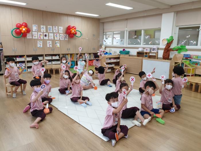 환경보호 차원에서 현수막을 박스나 종이를 활용해 함께 만들고 3, 4세는 O, x 방법으로 5세는 화이트보드판을 이용하여 직접 답을 기록해보는 방법으로 실시됐다. 모두 침착하고 진지하게 골든벨 문제를 풀었으며 문제를 맞추지 못한 유아는 안타까움을 표현하기도 했다.