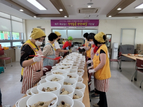 대한적십자사 영양군지구협의회 회원 30여명은 어르신들에게 무더운 여름을 건강하게 잘 이겨내시라는 뜻에서 정성껏 끓인 삼계탕을 준비했다. 구슬땀을 흘리며 준비한 삼계탕을 자원봉사회원들이 홀로 어르신 가정을 방문해 무더위에 불편한 점은 없는지 안부도 확인하고 대화를 나누는 뜻깊은 시간을 보냈다.