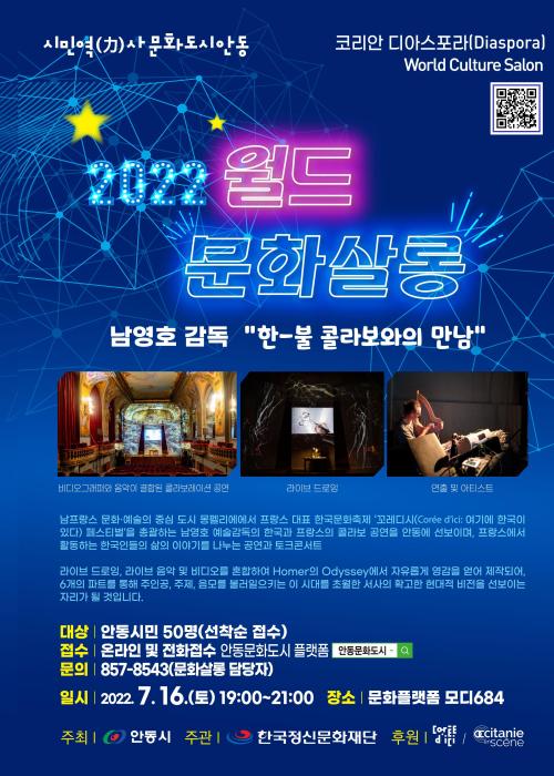구 안동역 문화플랫폼 모디684에서 “안동 시민역(力)사 문화도시 사업”의 하나로, 오는 7월 16일(토) 저녁 7시『2022 월드 문화살롱』을 개최한다.