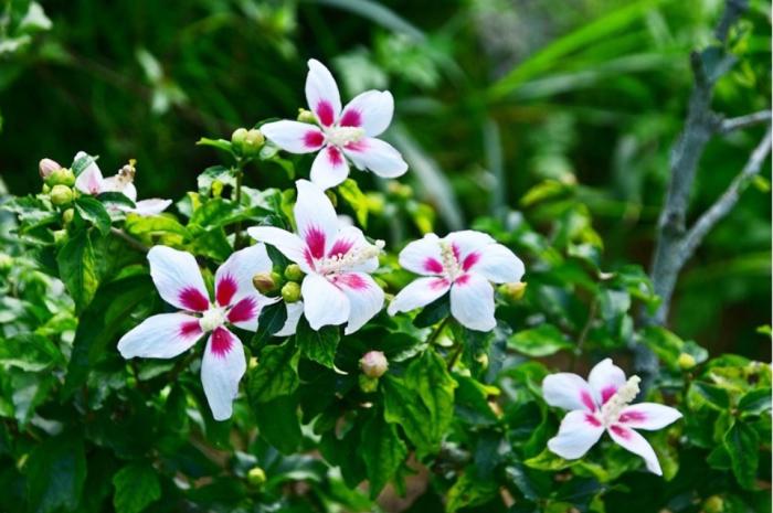 ※ 안동무궁화는 백단심계 홀꽃으로서 왜성형이며 일반 무궁화에 비해 꽃의 크기가 작고 예쁘며 꽃을 보고 있으면 마치 선비를 닮은 듯 품위가 느껴진다. 개화 시기는 7월~10월까지며 개화 시간은 36시간으로 일반 무궁화와는 다른 특징을 가지고 있다.
