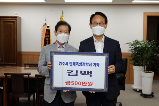 (재)영주시인재육성장학회는 26일 영주동에 거주하는 김백 씨가 500만원의 장학금을 기탁했다고 전했다.