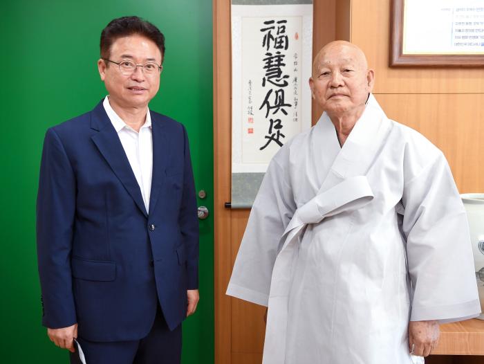 대한불교조계종 제15대 종정 중봉 성파 대종사가 26일 경북도청을 방문해 이철우 도지사와 환담을 나눴다.