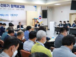 특히, 이번 정책보고회는 전 부서의 국실과소장 및 팀장까지 전원 참석함으로써 민선8기가 지향하는 군정방향과 철학의 공유를 통해 일방적인 보고를 탈피, 부서 간 업무협업과 소통의 깊이를 더하여 심도있는 논의를 진행하는데 의미를 두었다.