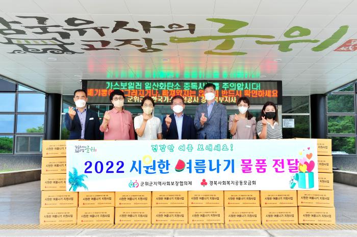 이번 사업은 경북사회복지공동모금회와 군위군지역사회보장협의체에서 저소득 가구의 시원한 여름나기를 위해 손선풍기, 미숫가루, 영양제, 타올, 텀블러 등을 준비했다.