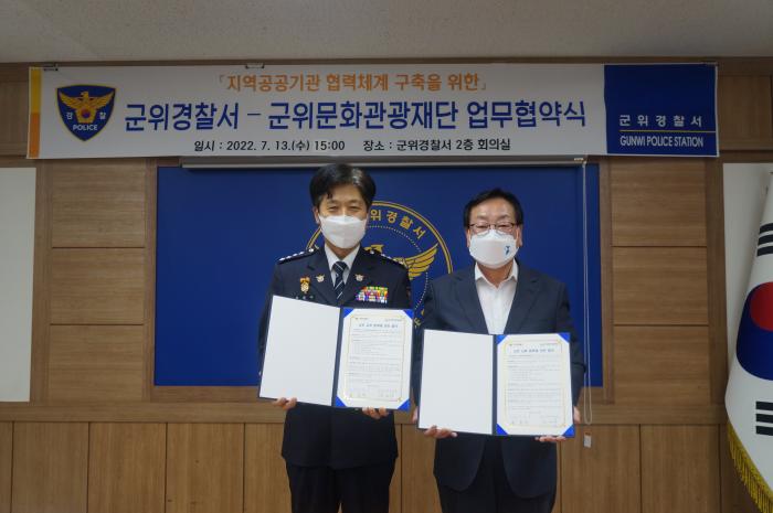 (재)군위문화관광재단은 지난 13일 군위경찰서에서 관계기관 임직원이 참석한 가운데 지역 공공기관 협력체계 구축을 위한 업무협약을 체결했다.