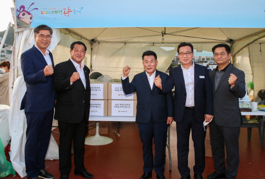 배한철 경북도의회의장은 2022.8.6.(토) 예천군 한천체육공원에서 개막한 SEMI 곤충엑스포 2022예천곤충축제에 도기욱, 이형식 예천 지역도의원과 함께 축제 종합상황실을 방문하여 전재업 부군수에게 도의회에서 마련한 격려품(쿨 넥밴딩)을 전달하고 관계자들을 격려했다.