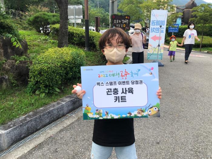 벅스 스탬프 챌린지는 축제 티켓 구매자에 한해서 7가지 포인트 방문 후 인증사진을 남기면 스탬프를 찍어주고 현장에서 즉석 뽑기를 통해 경품 추첨으로 1등 예천한우세트(1.2kg), 2등 예천 벌꿀세트 등 6등까지 선물을 증정한다.