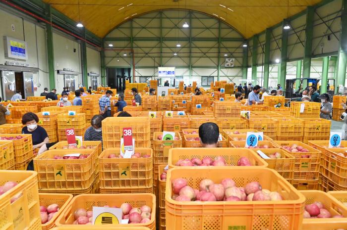 청송군 농산물공판장은 예년에 비해 빠른 추석명절로 전년도에 비해 일주일 이상 앞당겨 개장을 했으며, 이날 공판장 경매물량은 약 1,000상자 정도가 경매에 올라왔다.