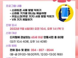 한편, 문화플랫폼 모디684(구.안동역) 문화홀에는 시니어 분과 회원이 포함된 서포터즈가 배치되어 과학기술정보통신부와 경북도와 함께하는 디지털 배움터를 연말까지 운영함으로써 시니어뿐 아니라 디지털 문화에 익숙하지 않은 시민들을 위해 누구나 무료로 다양한 디지털 기기(키오스크, AI스피커, VR, 태블릿PC 등)를 체험할 수 있도록 현장 교육을 지속하여 디지털 정보격차 해소에도 기여할 것으로 기대한다.