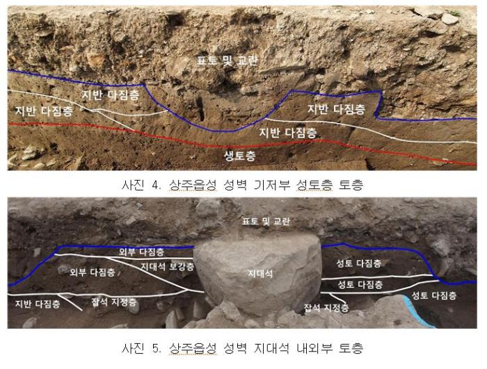 조사 대상지가 일제 강점기(1913년)에 제작된 지적도에 성도(城道)로 표시된 부분에 해당함을 현재 지적도와의 비교를 통해 확인했고, 바로 이 자리가 상주읍성의 북동쪽 성벽임을 이번 발굴조사를 통해 밝혀냈다.