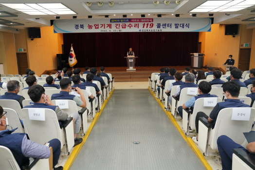 경상북도 농업기술원은 29일 지역 농가의 농기계 고장으로 인한 불편사항을 덜어주기 위한 통합전화를 개설해 농업인들의 영농활동을 지원하는 ‘경북농업기계긴급수리 119콜센터’발대식을 가졌다.