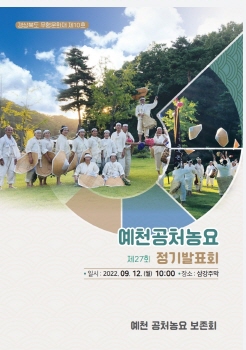 예천공처농요보존회(회장 양주석)는 12일 오전 10시 풍양면 삼강주막 야외공연장에서 ‘제27회 예천공처농요 정기발표회’를 개최한다.
