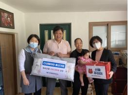 각 가정으로 전달한 25만원 상당의 선물꾸러미는 부모의 건강을 위한 자동전자혈압계와 아이에게 필요한 이불세트, 물티슈 등이다.