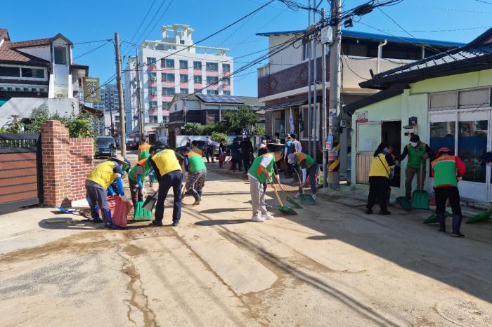 이번 태풍피해복구 지원은 자매결연 도시인 포항시의 태풍피해지원을 돕기 위해 청송군의 자발적인 제안으로 추진되었으며, 참여자들은 수해현장을 찾아 쓰레기 정리와 진흙 제거, 폐기물 제거 등 침수지역 복구를 위해 구슬땀을 흘리고 있다.