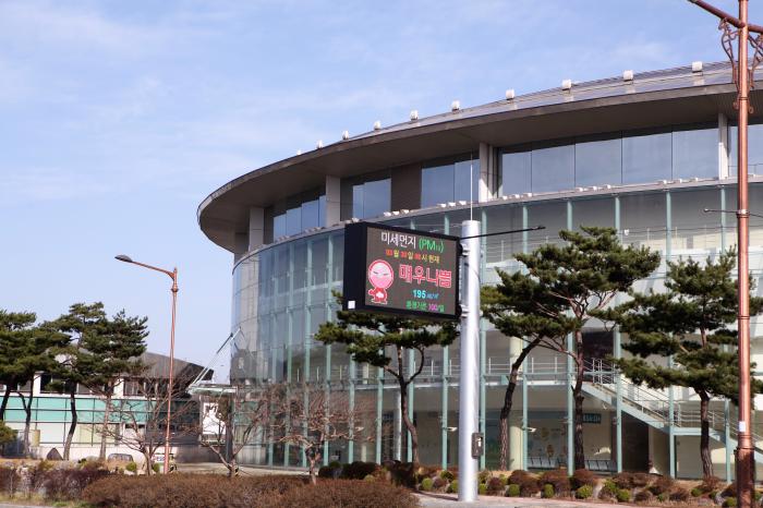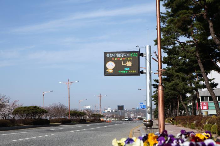 안동 체육관 앞 강변도로에 설치된 대기오염 전광판(30일 오전 촬영)