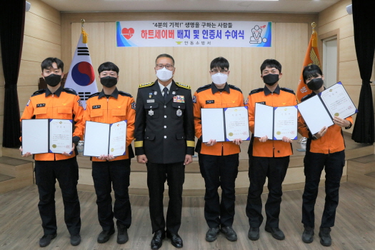 심학수 안동소방서장은 “타인의 생명을 구한 여러분이 매우 자랑스럽다”며 “이는 단지 하나의 생명만을 구한 것이 아닌 누군가의 소중한 가정의 행복 또한 함께 지켜낸 것으로 자부심을 갖고 앞으로도 누군가의 생명을 구하는데 최선을 다해 주길 바란다”고 했다.