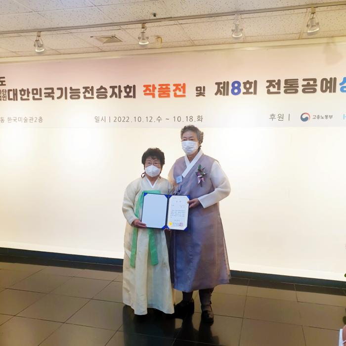 고용노동부, 한국산업인력공단, 글로벌숙련기술진흥원에서 후원하고 사)대한민국기능전승자회에서 주관하는“2022년 제8회 전통공예상품공모전”에 사단법인 국가무형문화재 안동포짜기마을보존회 교육생들이 특선과 입선을 수상하는 쾌거를 이뤘다.