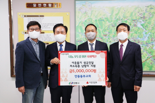 안동동부교회에서 저소득층 및 취약계층 대상자를 위로하고자 지난 14일 난방비 지원금 5백만 원을 안동시에 기탁했다.