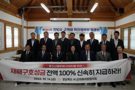 한편, 경북 시군의회의장협의회는 태풍 힌남노의 피해로 지난 9월 7일자로 특별재난지역으로 선포된 포항시와 경주시에 대한민국시군자치구 의회의장협의회의 성금 일백오십만원을 쌀과 생필품으로 각각 전달했다.