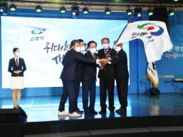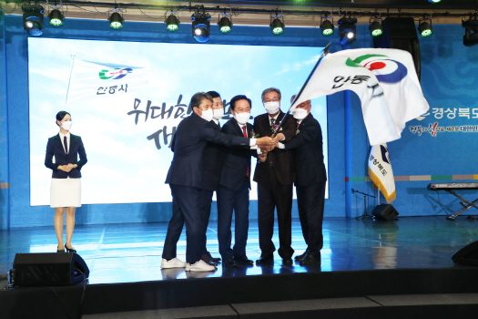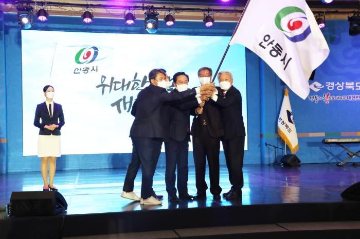 이날 안동 시기가 입장하며 권기창 시장을 비롯해 권기익 안동시의회 의장, 김대일, 김대진, 권광택 경북도의회 의원이 함께 무대에 서서 힘찬 안동의 발전을 염원하며 깃발을 들었다.